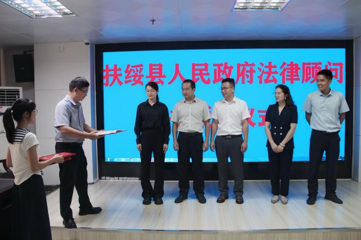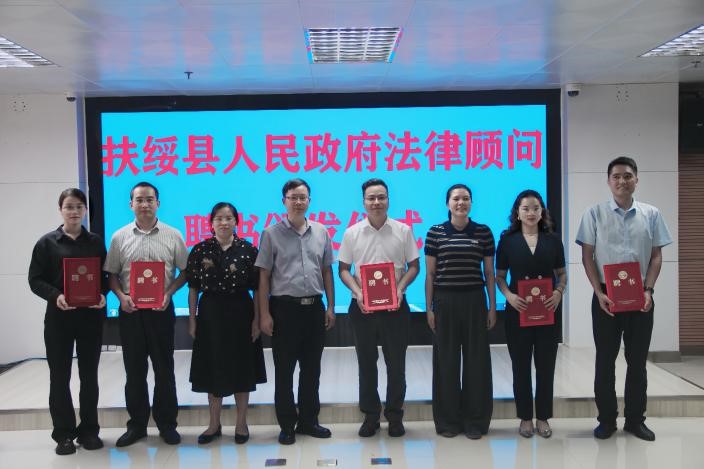 会议最后举行了简约而庄重的聘书颁发仪式。严学恩代表扶绥县政府向民族律所担任政府法律顾问团队的律师颁发聘书,标志着双方合作步入实质推进阶段。